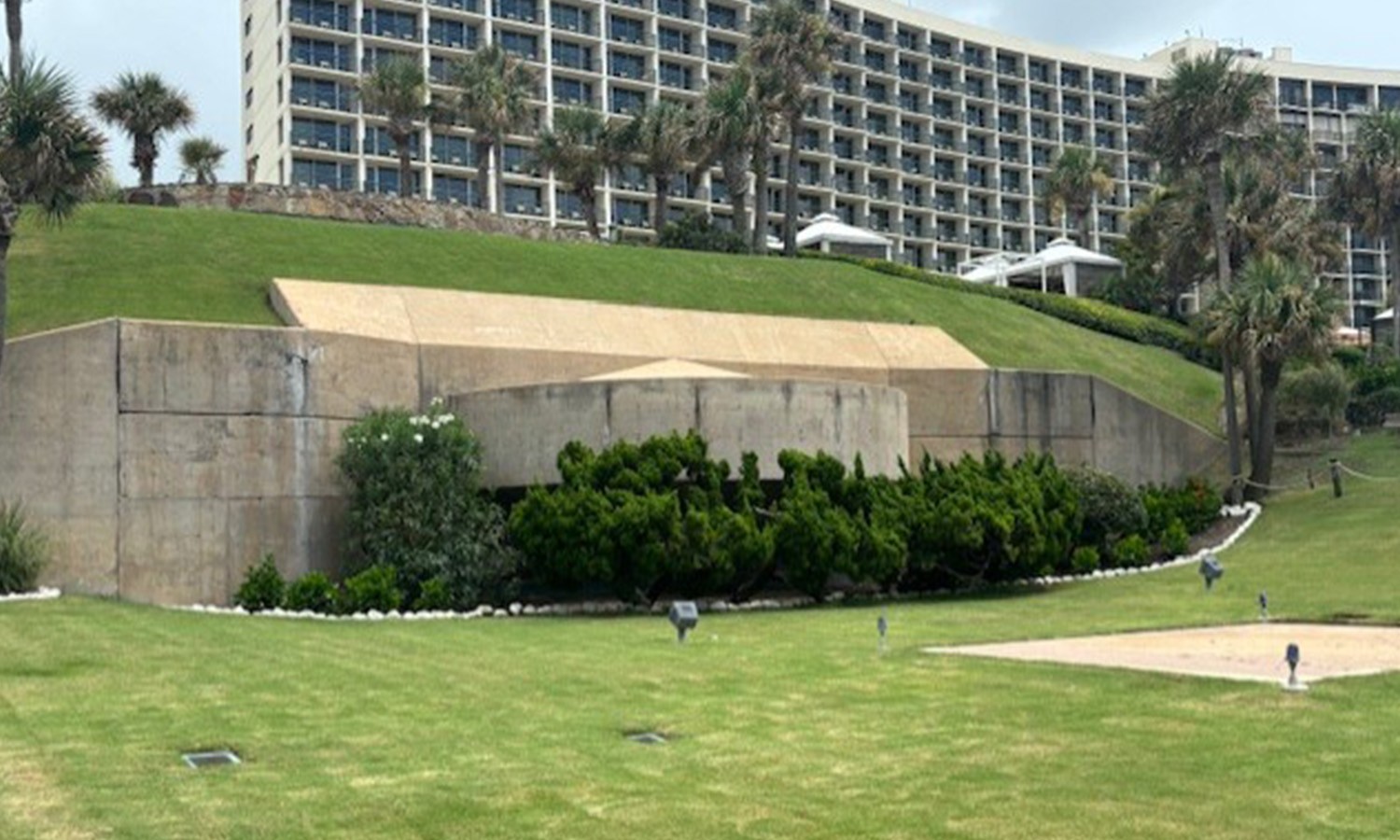 Today, the massive casemated bunker remains a striking landmark along Galveston’s Seawall Boulevard. One of the original gun emplacements now supports a resort swimming pool, while the other features a wedding gazebo—modern additions that both conceal and emphasize the historic structure beneath. As one of the few surviving Endicott- and WWII-era coastal artillery bunkers in Texas, it stands as a rare and significant reminder of the island’s military past.