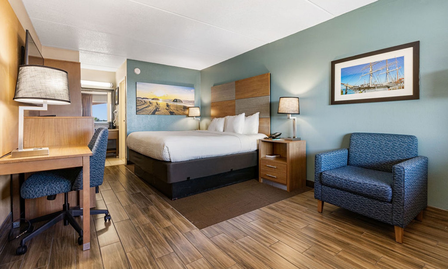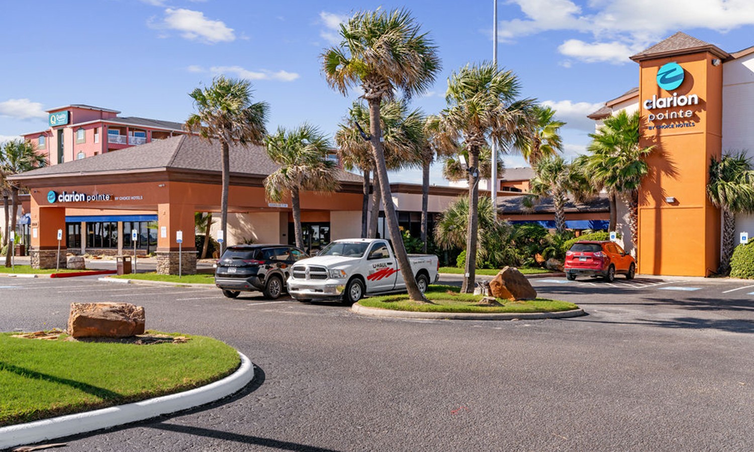 Clarion Pointe Galveston blends coastal convenience with everyday comfort. Guests enjoy a complimentary full hot breakfast, free Wi-Fi, and an outdoor pool just steps from the sand. Nearby dining, shopping, Moody Gardens, and Pleasure Pier are all within easy reach.