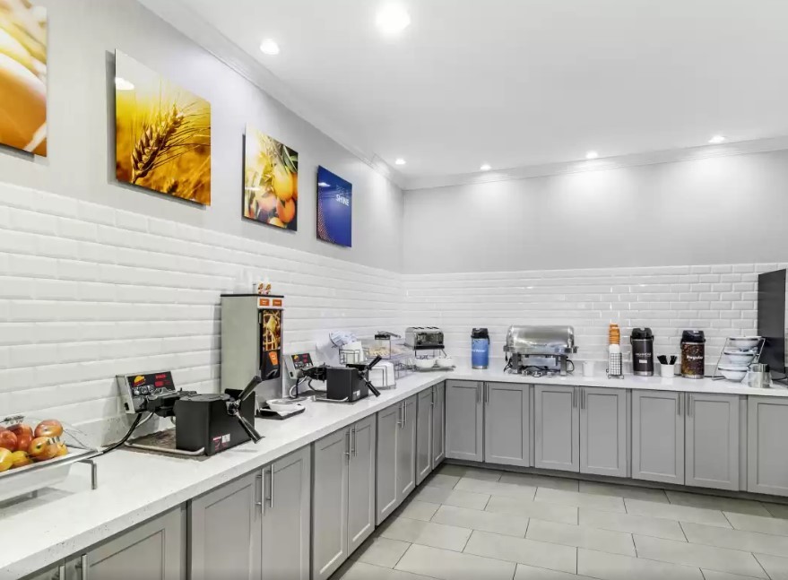 The hotel rooms are comfortable and stocked with everything you'll need during your stay at the Comfort Inn & Suites: a refrigerator, microwave, hairdryer, and flat-screen TV. Grab a free cup of coffee in the lobby each morning along with a complimentary breakfast. There is an indoor pool and a fitness center equipped with free weights, a multi-gym, a stair stepper, an elliptical machine, and a treadmill.