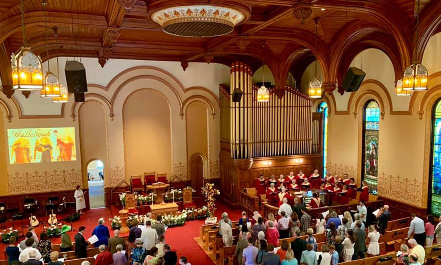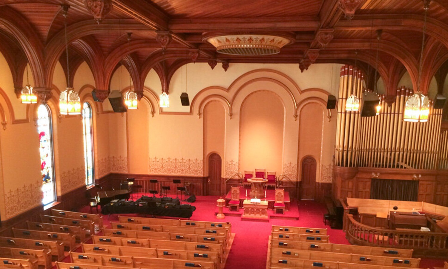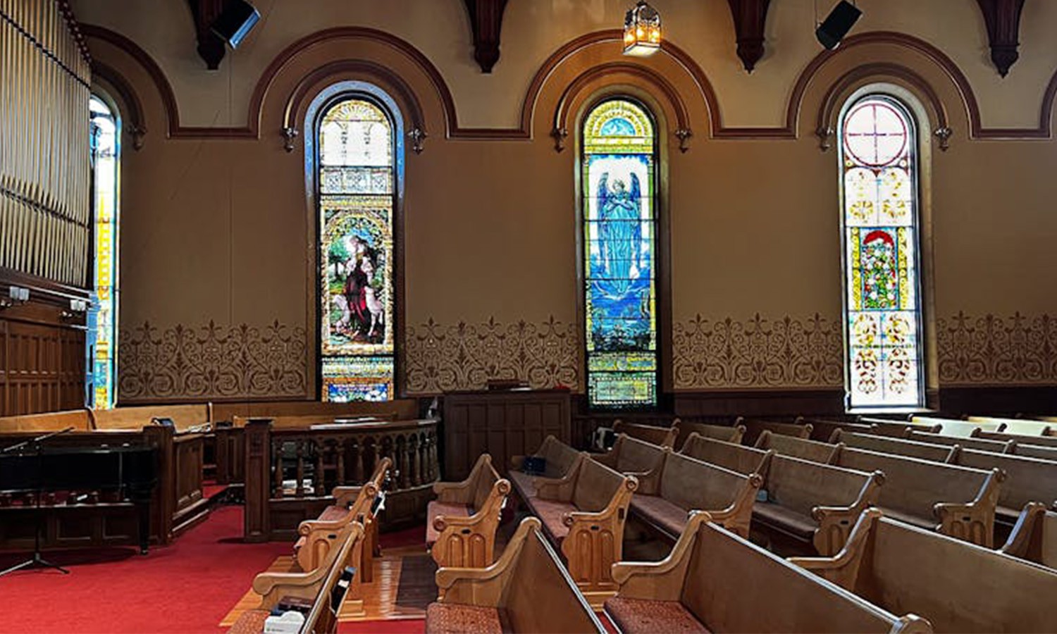 - The sanctuary includes wood-carved furnishings from the 1890s and historically significant design details such as an old mortuary room (once used after funerals) that reflects the community role the building has long held.