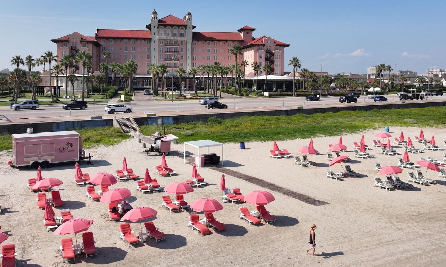 GiGi’s Beach Club pairs Gulf views with curated cocktails, cushioned lounges, and attentive service directly across Seawall Boulevard from Grand Galvez.