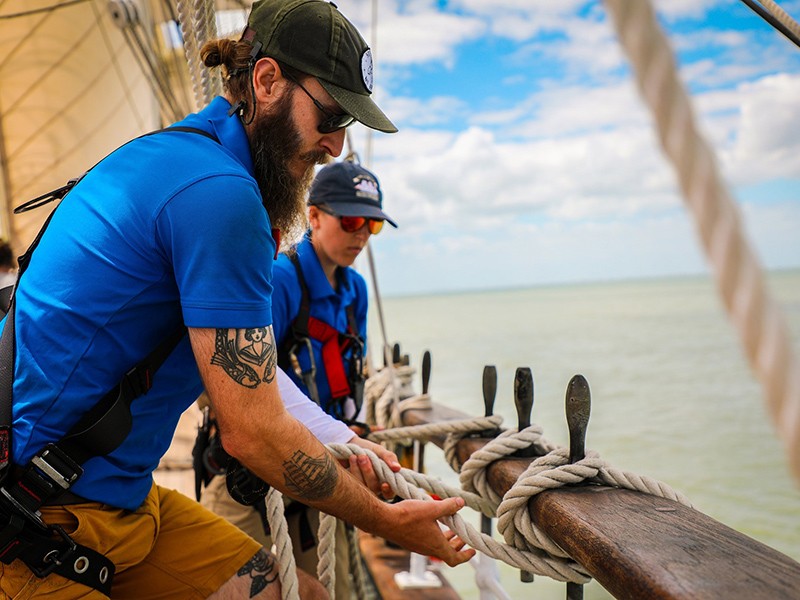 GHF is able to offer a limited number of ELISSA daysail spots on board as a sail training student. As a sail training student, participants will experience what life was like as a 19th-century sailor. The program combines both hands-on and lecture-based learning, with a focus on setting sails and navigating the 148-year-old ship through the Gulf. Join us on this journey through the past and discover your own piece of history.