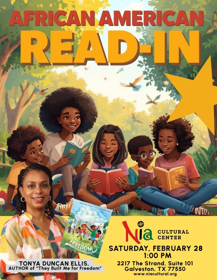Come to the Nia Cultural Center for our very first African American Read-In of 2026! We’re excited to welcome Tonya Duncan Ellis, author of the SCBWI Crystal Kite Honor book "They Built Me for Freedom: The Story of Juneteenth and Houston’s Emancipation Park" (HarperCollins, 2024).