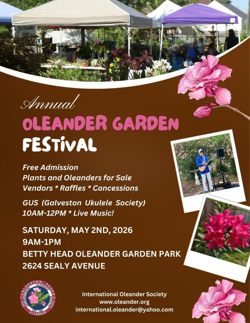 Galveston is considered the Oleander City! Welcome to Galveston's Annual Oleander Garden Festival!!