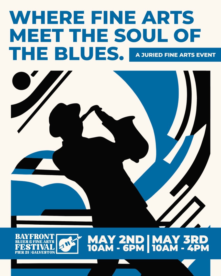 Join us for the inaugural debut of the Bayfront Blues & Fine Art Festival, an exciting new spring fine art tradition on Galveston Island. Bayfront Blues & Fine Art Festival features nationally and regionally recognized blues musicians, juried fine artists from across the country, food vendors, and a lively waterfront atmosphere celebrating art and music. General admission is $15 per day. Children are free.