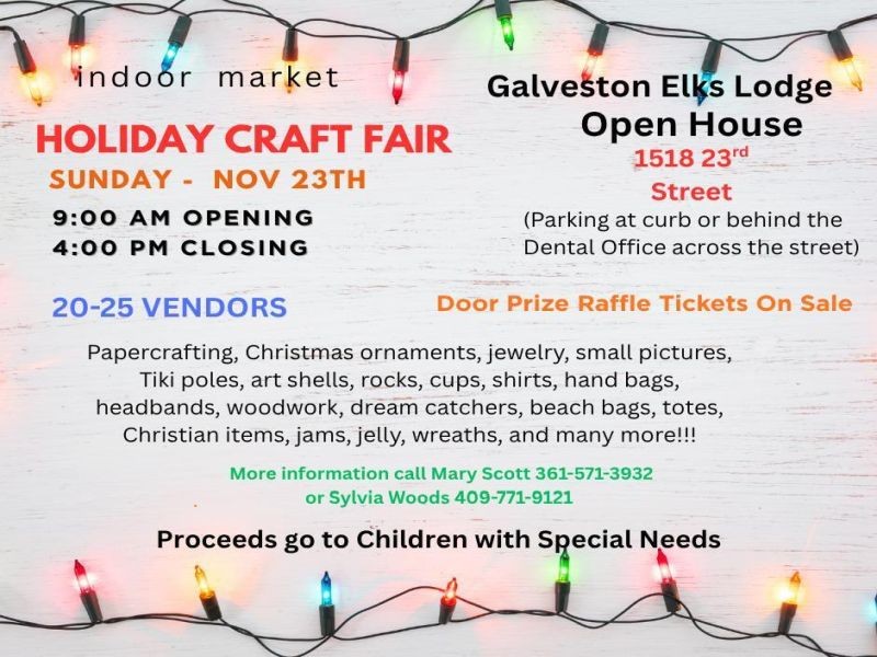 Join us for paper crafts, Christmas ornaments, jewelry, and small pictures Tiki poles, art shells, rocks, cups, shirts, and handbags Headbands woodwork, dream catchers, beach bags, totes, wreaths and more Christian items, jams jellies, and other holiday goods. Food and Drinks will be available!