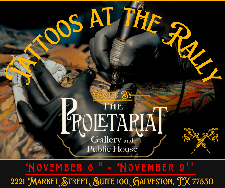 Looking for a place to be in the action for Lone Star Motorcycle Rally, but not lost in it? Just one block from the heart of the chaos, The Proletariat Gallery & Public House is your front-row seat to the best people-watching in town. All weekend long, we’re hosting a tattoo event curated by Tattooer, Gypsy Overton, featuring multi-award-winning tattoo artists creating custom pieces right here on-site.