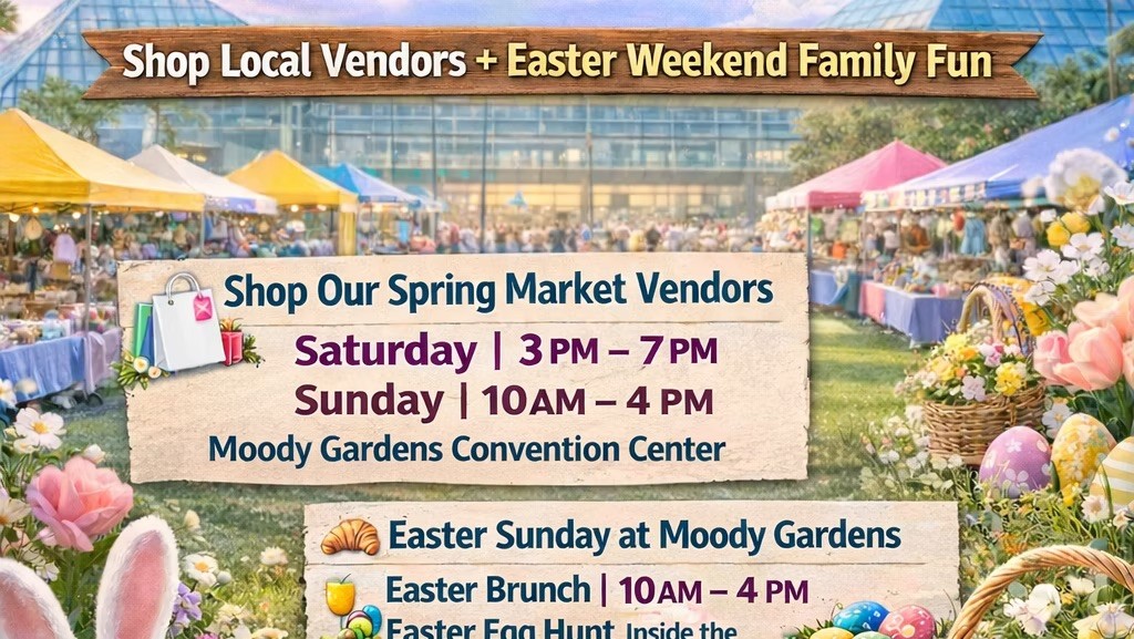 Celebrate spring with us at the Moody Gardens Easter Market, a festive weekend of shopping, family fun, and holiday activities.