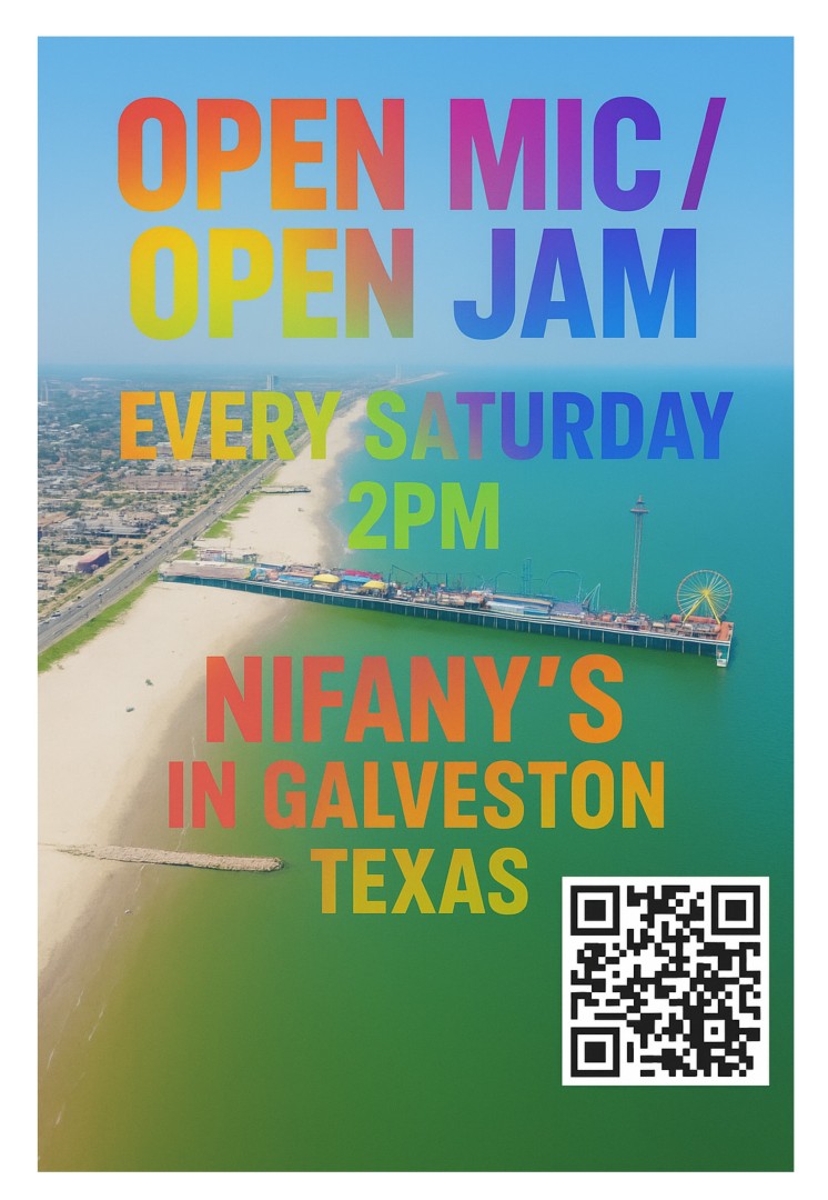 Our family-friendly open mic takes place every Saturday at 2 pm in Nifany's SweetStore Café Bar. Everyone is welcome to come and play music or simply watch. Hosted by MisterPher. No registration required. Free parking is available in front or in the back.
