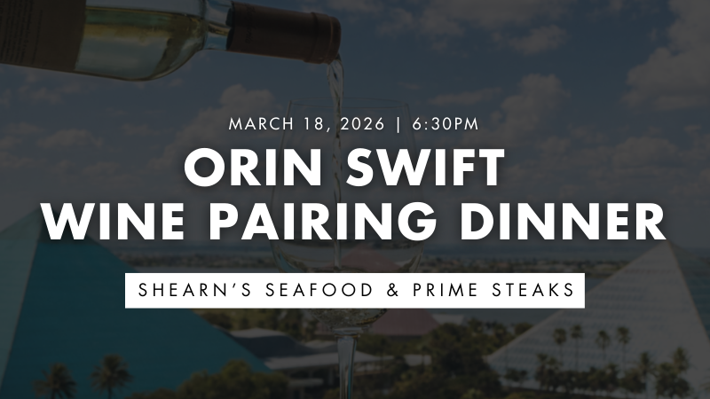 Join us for an elevated evening of fine wine and culinary craftsmanship at Shearn's Seafood & Prime Steaks (located inside Moody Gardens Hotel) with the Orin Swift Wine Pairing Dinner. This exclusive dining experience features a multi-course menu thoughtfully paired with acclaimed wines from Orin Swift Cellars.