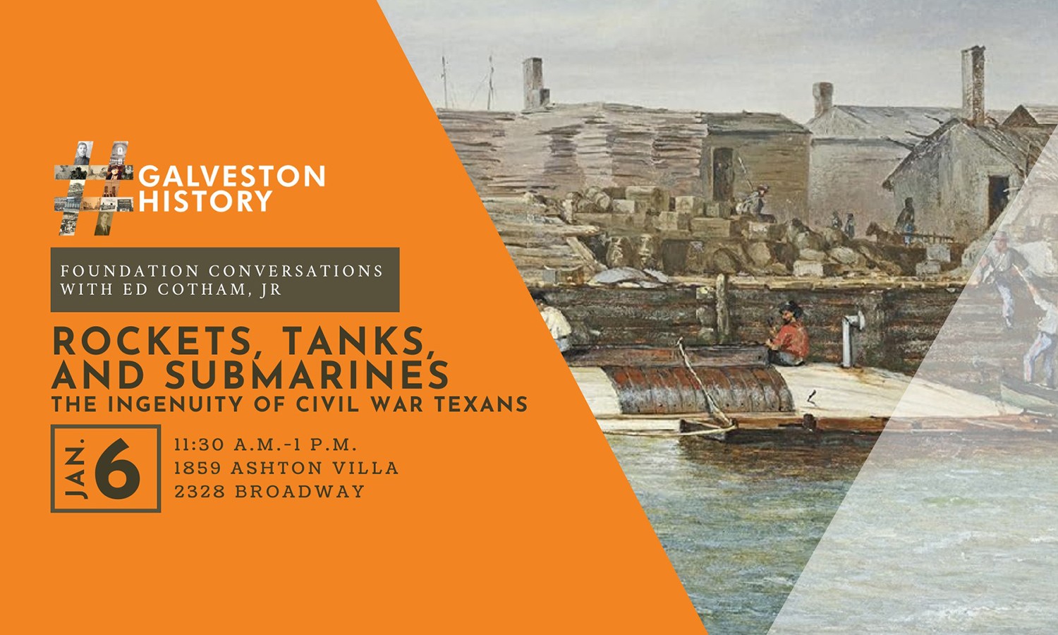 Few topics have fascinated American readers more than the Civil War. Occurring as it did at the beginning of a new industrial age, it fostered a wide variety of strange and innovative contraptions that shaped the course of the conflict. Texans were among the most creative in their designs, and added their talents to the mix, creating a variety of war machines and devices that are remarkable for their ingenuity. Ed Cotham is a veteran Civil War author, and his list of publications continues to grow. This latest offering takes the reader through a remarkable ride complete with all sorts of schemers, spies, tinkerers, and dreamers, trying to harness technology to help them win the war. In an age where innovation happens in real time, and new weapons like drones and cellphones are changing the nature of the battlefield, Cotham’s Rockets, Tanks, and Submarines reminds us that this process has been going on for a very long time! And Texans and Galvestonians were there all along, adding their imaginations to solve the problems their comrades facedunder fire.