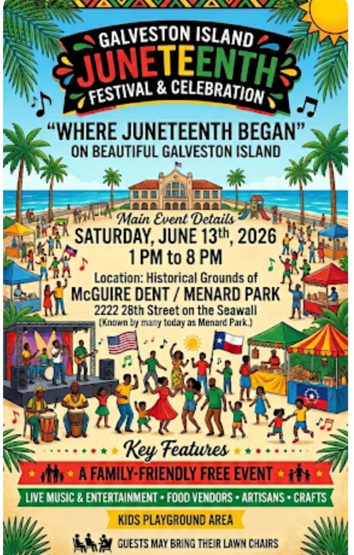 The 2026 Galveston Island Juneteenth Festival & Celebration will feature a variety of Food Vendors and non-food