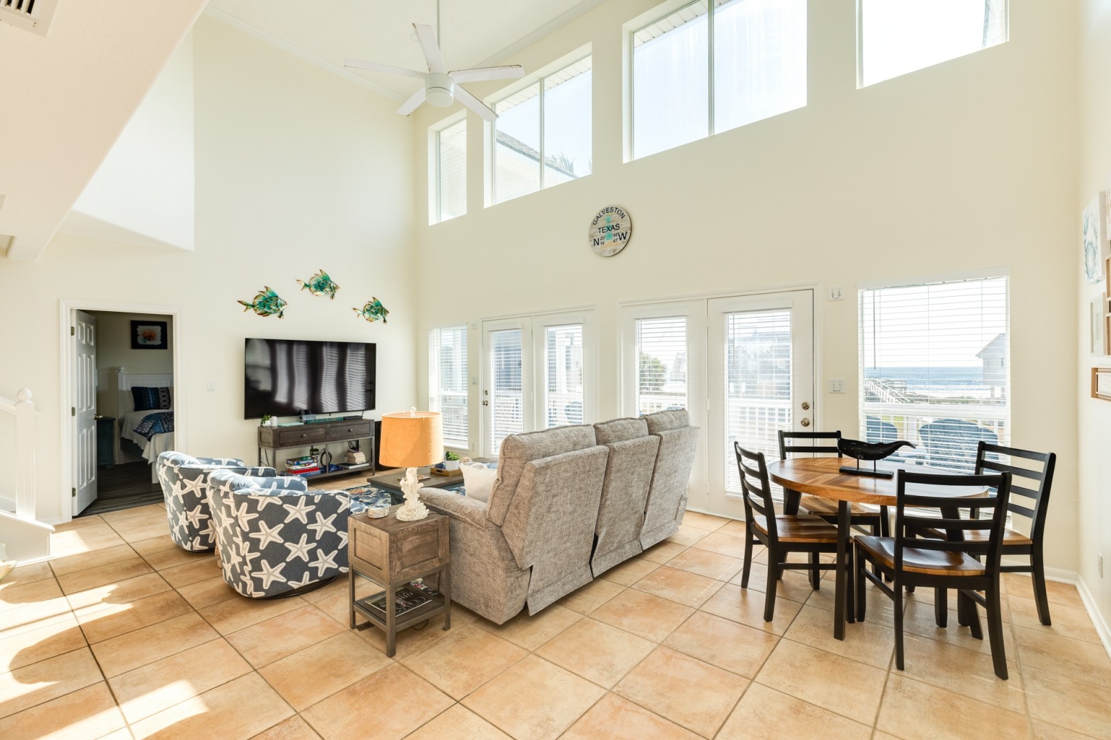 Thoughtfully designed for comfort and convenience, 6 Little Seashells is packed with amenities, including central A/C, ceiling fans throughout, multiple TVs, two refrigerators, a mini fridge, and plenty of beach toys for family fun. With four spacious decks—one partially covered and three fully covered—you’ll always have a spot to relax and take in the stunning Gulf scenery. Whether you're spending your days on the sand, enjoying a friendly game of pool in the loft, or grilling under the stars, 6 Little Seashells is the ultimate beachside escape in Galveston.