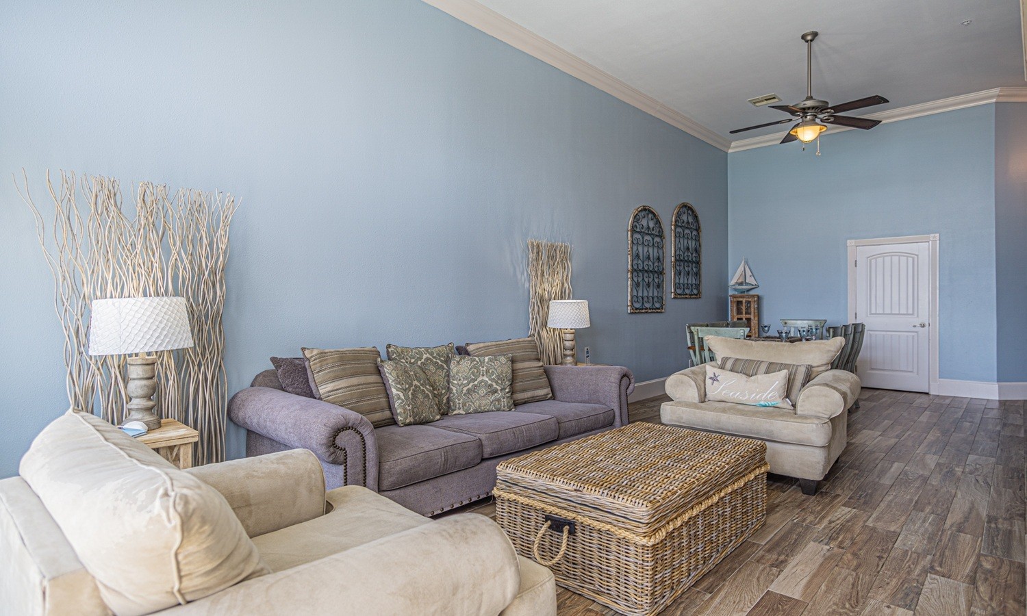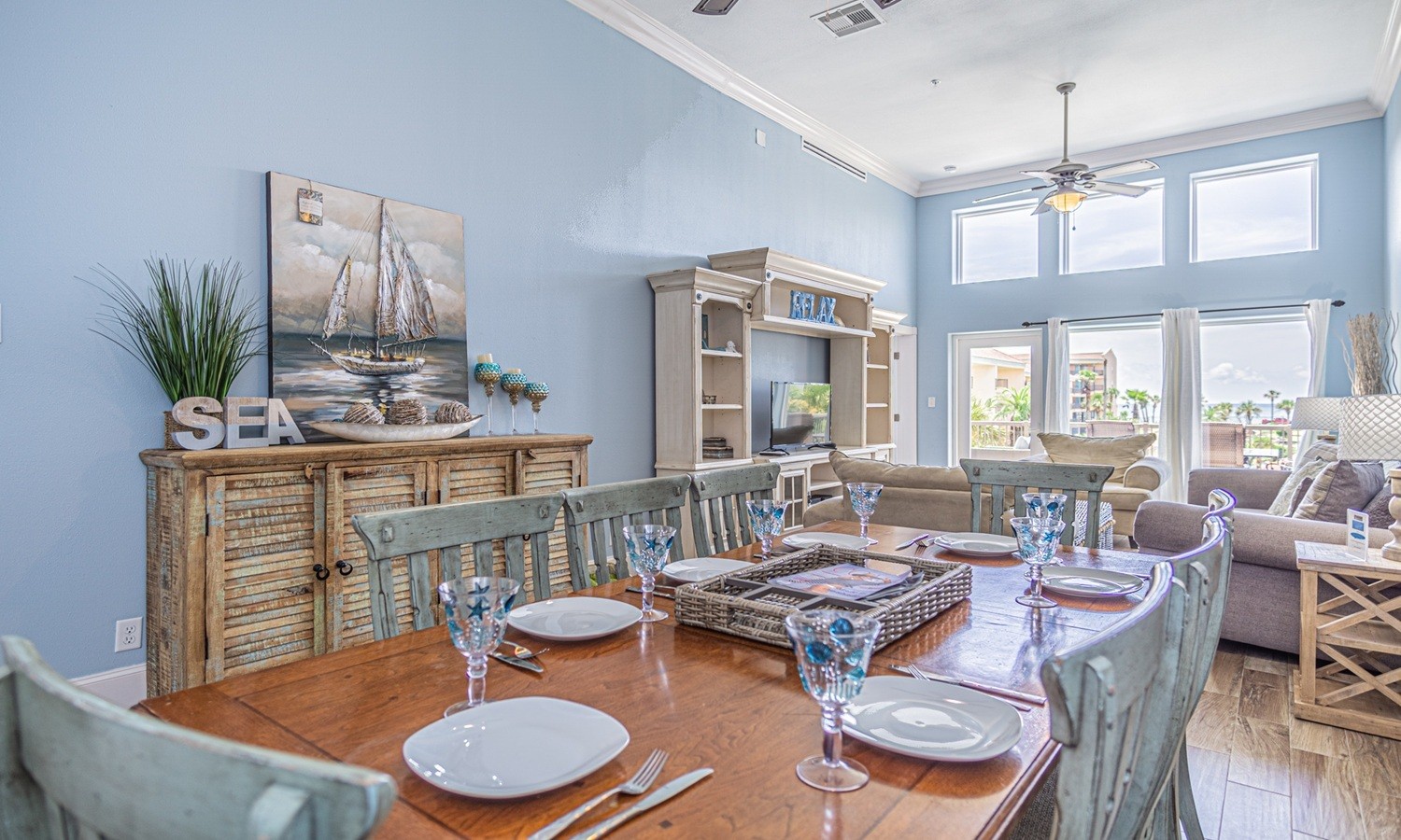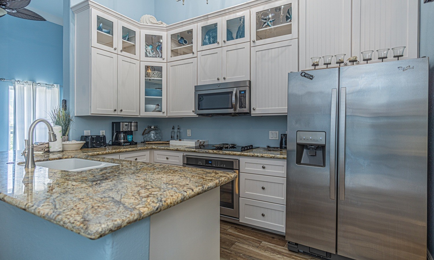 Dancing Mermaid, 2 Bedroom, 2 Bath, Sleeps 8, Pet friendly This 2 bedroom/2 bath offers coastal shabby chic decor that is comfortable and relaxing. The unit sleeps 8 with 2 King beds, a daybed & trundle, and a comfy queen sleeper sofa. Guests will also enjoy the 55" Ultra 4K Smart TV & DVD player in the living room, free secure WiFi, & DishTV. There's a fully stocked kitchen...complete with dinnerware for both inside dining or patio dining. A full-size pantry, large side-by-side refrigerator and full-size dishwasher can easily accommodate a family gathering. A coffeemaker, toaster, blender, can opener, cork screws, various sizes of pots and pans, and cooking utensils, as well as a stock pot are all provided. Towels and sheets are provided by our partner linen service. There may be some variations in furnishings or decor since pictures were taken. The property has wonderful amenities to discover and enjoy while staying at Dancing Mermaid. Three pools (one of which is heated), a hot tub, poolside grills, picnic tables, chaise loungers and poolside seating...as well as a volleyball area...all in a relaxing tropical setting. Additional outdoor activities include ping-pong and bean bag toss. There's free internet in the lobby and an exercise room overlooking the Gulf.