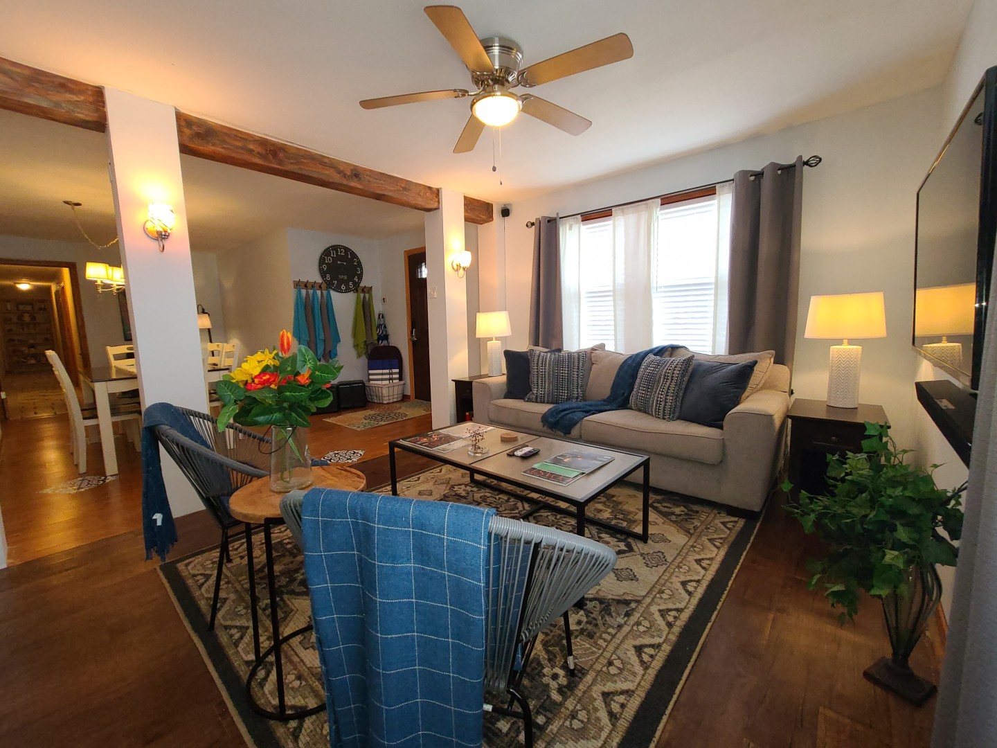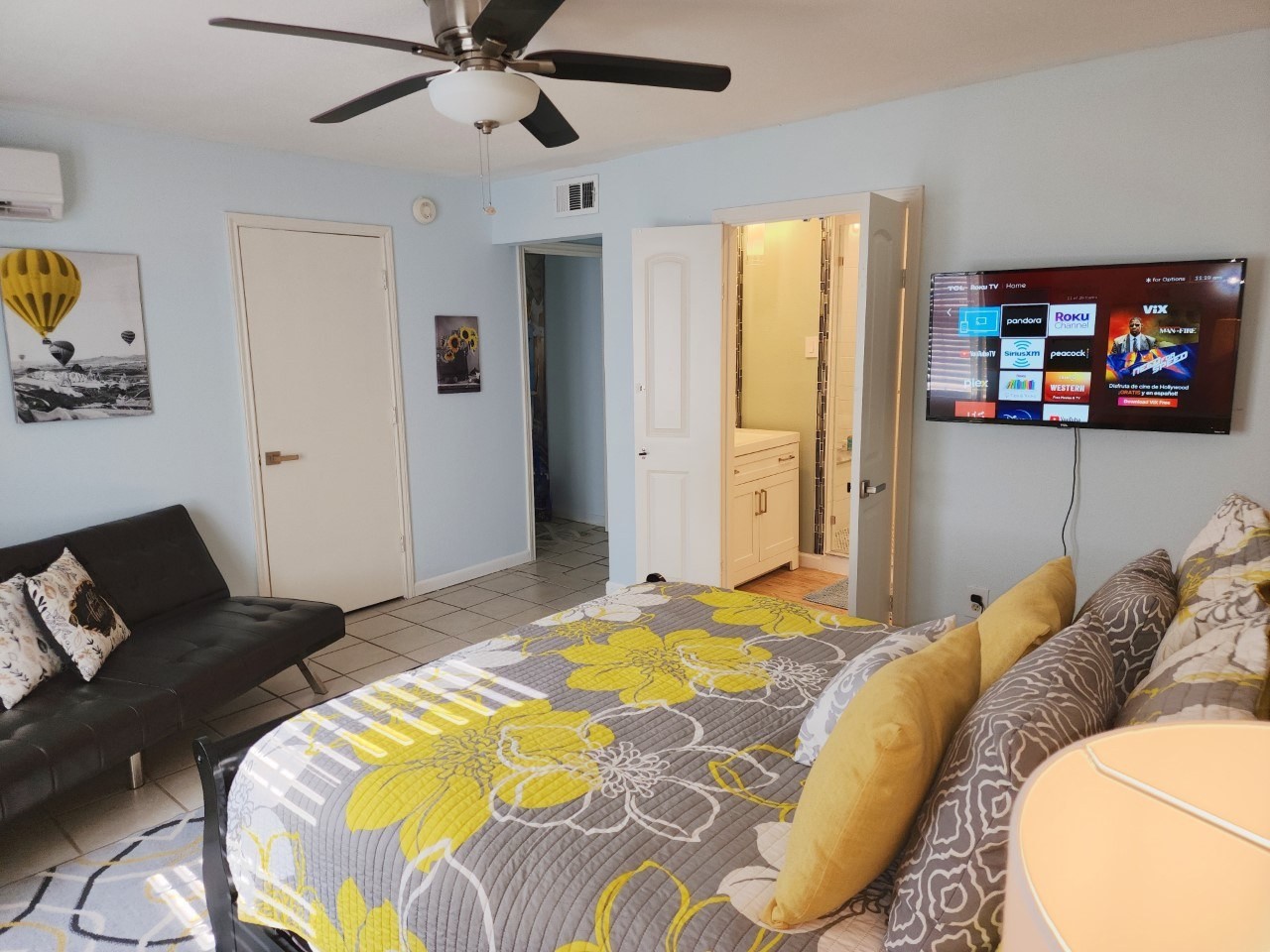 Celebrate the holidays by the coast when you stay at Johnson Island Cottage! Johnson Island Cottage - An updated and renovated first floor rental in a residential neighborhood with dining room, kitchen, living room, yard, off street parking, spa shower in the renovated bathroom with 3 bedrooms. Located just off 61st street, the property is 5 minutes or less to Schlitterbahn, Moody Gardens and The San Luis Resort. For the nature and outdoor lovers, a storage room is available (additional fee required) for bikes, kayaks, paddle boards, etc. and two garage parking spaces are available as well (add'l fee required). Please let us know of any special requests at the time of reservation and we will do our best to accommodate! The kitchen is full sized with refrigerator, oven, microwave, double sink, clothes washer and dryer, cookware, utensils, serve ware, dinnerware, drink ware and silverware. The open layout is relaxed and flows nicely from kitchen to living room to dining room with the front door located centrally between the dining and living rooms. The living room has a 4K big screen TV on articulating mount for viewing in any of the three rooms and a 5.1 sound system for movie nights or just listening to music! The dining room seats six at a rectangular table beneath a casual yet elegant chandelier. When not eating, the room is great for family game night or a good poker game! The first bedroom is just off the dining room and has a single twin bed, dresser, nightstand and lamp with large closet. The bedroom has a window unit so it can be kept as warm or as cool as you like! The second bedroom has two twin beds, two closets and a window unit. There is a large carpeted area for kids to get on the floor and do kid stuff! The third bedroom is the "master" with a queen bed, night stands, lamps, two dressers and couch/futon. The room also has a wall mounted TV with articulating mount for viewing from bed or the seating area. The bedroom has a window unit air conditioner to keep it just the right temperature! There may be some variations in furnishings or decor since pictures were taken.