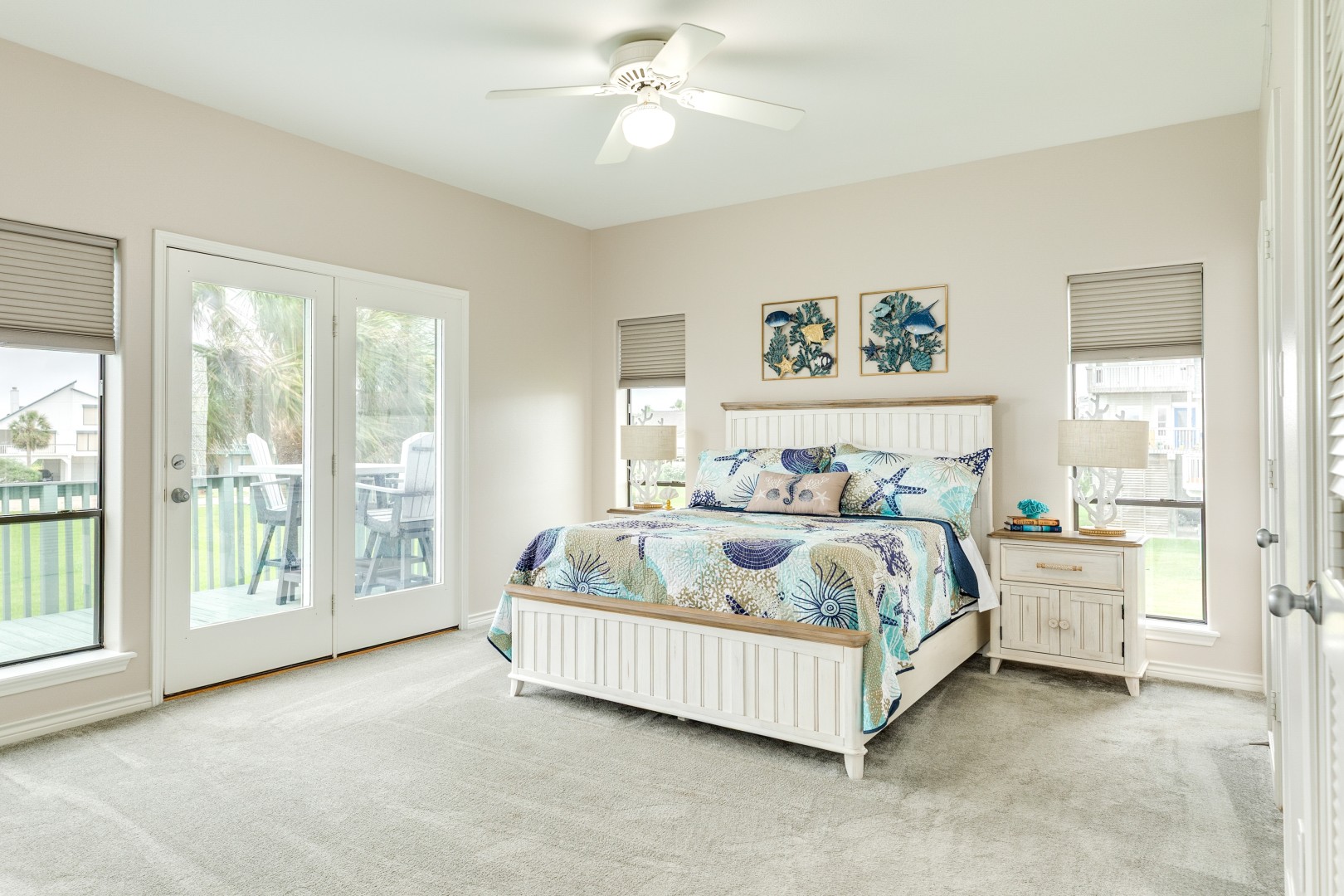 On the ground level, the finished patio offers a spot to hang out in the shade, rinse off in the enclosed outdoor shower, and grab everything you need from the stash of beach gear before heading down to the water. With parking for four cars, central air and heat, ceiling fans throughout, and multiple TVs, Poor Boys Hideaway is set up for comfort and convenience from top to bottom.