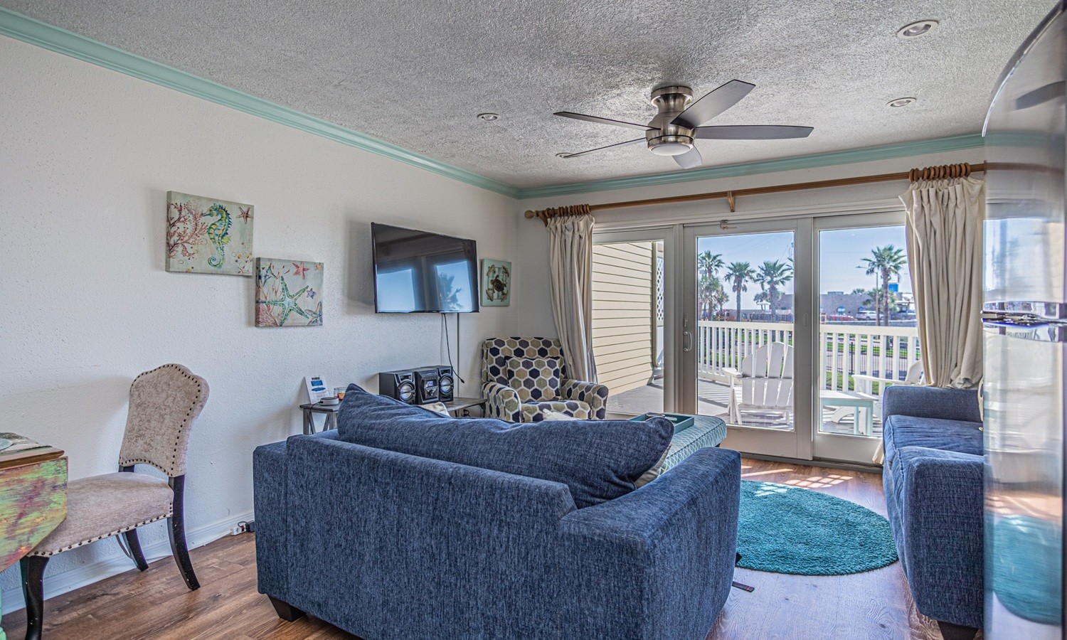 Sea Turtle Cove is The Place to Make Lifelong Island Memories!! Sea Turtle Cove is located just west of 61st Street on Seawall Boulevard in the Victorian Condominiums. The unit has been completely updated, beautifully decorated, thoughtfully appointed to create an elegant, yet playful, owner's retreat and vacation rental. The apartment features a hybrid queen bed in the bedroom with nightstands, lamps, ceiling fan, TV with cable and closet. The custom built full kitchen has granite counters, lots of cabinets and is fully equipped with a full sized refrigerator/freezer, combo microwave/convection oven, four element glass range, dishwasher, cookware and utensils, plates, bowls, glasses, tumblers, silverware and more. The open concept floor-plan keeps the conversation going with a couch and love-seat, both with pull out beds, a recliner and wall mounted big screen TV with cable and Roku. There is a very large balcony right off the living room with Adirondack loungers to enjoy outdoors! The bathroom has a walk in shower with white subway tile, updated vanity and toilet. 100% cotton towels and sheets, paper towels, toilet paper, cleaning products, dish and laundry soap, coffee, creamer and sweeteners are all included. The property has two swimming pools, one is heated year round, tennis courts, fitness center, BBQ area, covered parking and is completely fenced and gated. The beach is across the street and many restaurants and shopping are also within walking distance, including Walmart, Sonic, Pit Stop BBQ, and Orange Leaf frozen Yogurt. There may be some variations in furnishings or decor since pictures were taken. Please check in at the front office before going to your unit. There is a $35 resort fee for up to 14 days and will increase to $70 for 15-30 days; that includes a parking pass, amenity bands, and entry codes into the property gates and pools. This fee will allow you access to the property as well as the codes for amenities and parking for up to 2 vehicles. If you pay an ADDITIONAL FEE of $35, it will cover up to 2 extra vehicles. Every motorized vehicle MUST BE registered. (Car, Truck, SUV, Motorcycle, Slingshot, Golfcart, Trailer, etc.) Trailers will be charged $35 per axle. All trailers must be unhitched and parked in over flow parking area. Trailers are allowed during Galveston's Lone Star Rally week only. The office is open from 7am to 11pm and will not accept cash. Please be sure your car is registered with The Victorian as they reserve the right to tow any unregistered vehicles. Must be 25 years of age to book. Photo identification is required. All fees and services may be subject to 15% tax.