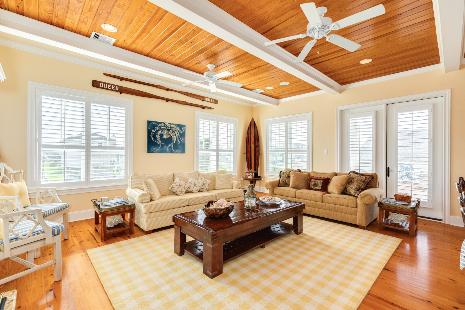 From the moment you arrive, The Balinese sets the tone for a carefree coastal escape. The ground level features parking for four cars, a finished patio with an outdoor TV, 2 picnic tables, yard games, boogie boards & other beach gear, and a fully enclosed outdoor shower to rinse off the salt and sand. An elevator services all levels of the home, making it easy to move between floors, whether you're hauling groceries, luggage, or your latest finds from an afternoon of shopping the local galleries and antique stores.