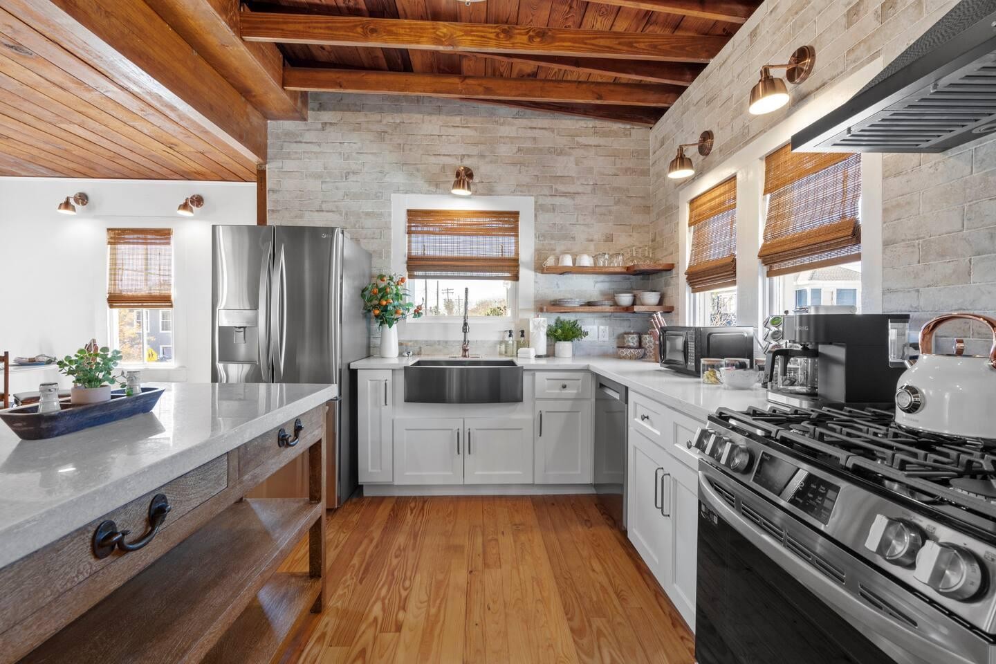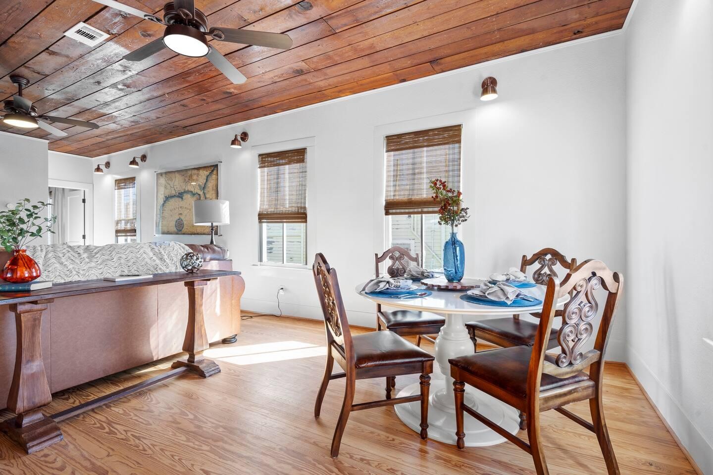 Prime Location! Beautifully renovated and thoughtfully designed beach retreat, blending modern luxury with extra amenities. Walk to the famous Strand for dining, shopping, art, and nightlife. Just steps from Stewart & Porretto beaches, cruises, and UTMB. Minutes by car to Pleasure Pier, Moody Gardens, Schlitterbahn, and the Seawall.